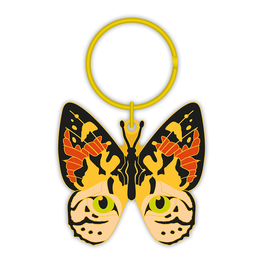 Hard enamel, 50mm, gold plated key ring with 'Painted Lady' design.